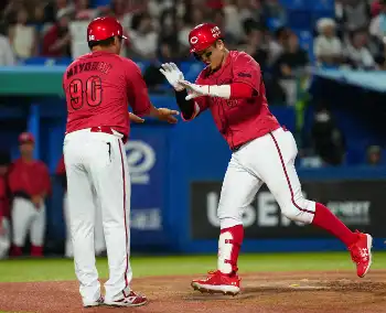 打線は初回に坂倉の3ランで先制した。その後も3回に小園のソロ、4回に石原の適時打と秋山の犠飛など着実に加点した。中村奨を除く先発野手全員安打の16安打8得点。投手の九里は6回までに送りバントを3度決めて自らを助けた。
