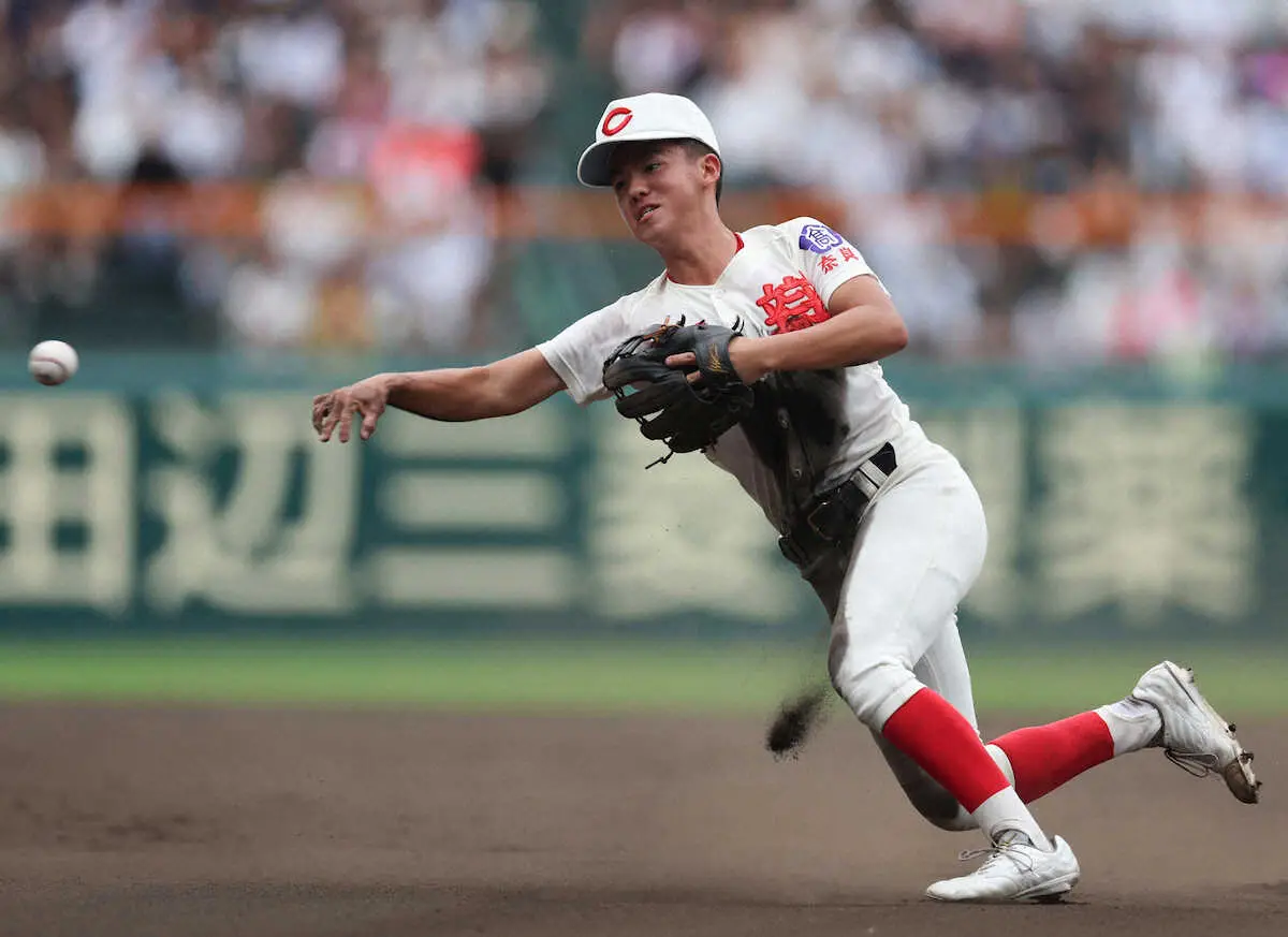 今井はこの試合が今大会初先発。初回1死一塁では相手3番・沢田の右前に抜けそうな鋭い打球に飛びつき好捕。先発した1年・杉本真滉をバックから盛り立てた。