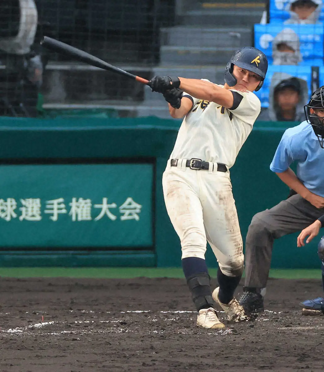 7回には、1死走者なしで入耒田華月(2年)が四球で出塁すると、今岡拓夢(2年)が左前打でチャンスを広げ、小田大介監督が「1人しかいないでしょ」とキーマンに指名したプロ注目の4番・正林輝大(3年)が1死一、二塁から左翼線適時打を放って4点目。さらに5番・岩下吏玖(りく=3年)が2点適時三塁打、6番・上川床勇希(3年)が中越えに適時二塁打。この回4連打で一挙4点を加え、突き放した。