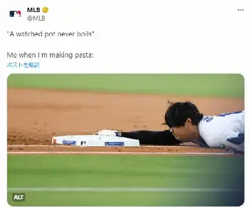 MLB公式サイト 大谷の間一髪帰塁に“写真でひと言” 米ことわざで「気長に待とう」
