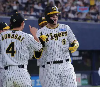 阪神 ヤクルトに快勝で広島とのゲーム差4 佐藤輝が4年連続2桁本塁打&西勇は両リーグ50勝到達