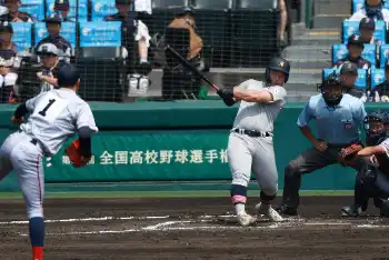 先発の背番号11の右腕・下山大昂(2年)は、内外角を丁寧につき打たせて取る投球を展開。初回2死二塁では、4番・藤本陽毅主将(3年)を内角直球で捕ゴロ、その後も走者を背負いながら要所を締めて5回を無失点に抑えた。6回からは、プロ注目の最速152キロ右腕・青森山田の関浩一郎(3年)がマウンドに上がった。しかし、6回に3安打を集中されて3失点して逆転を許した。7回以降はスコアボードに「0」を並べたが、打線がビハインドをはね返せなかった。