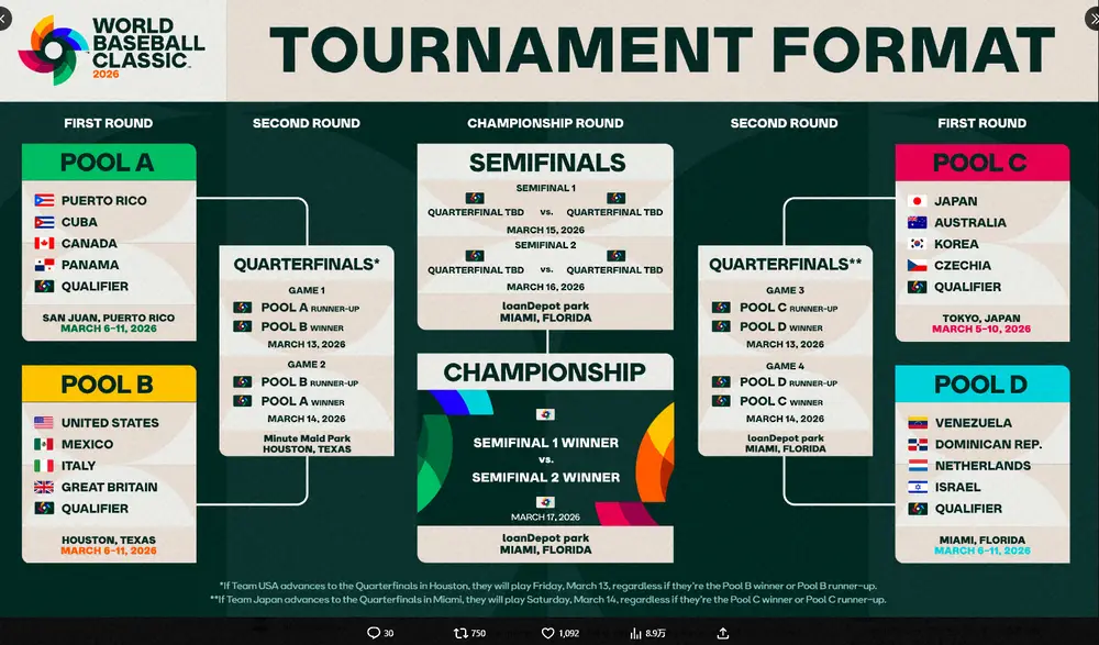 日本は韓国、豪州、チェコと同組 26年WBC1次R組分け発表 準々決勝でも強豪と対戦