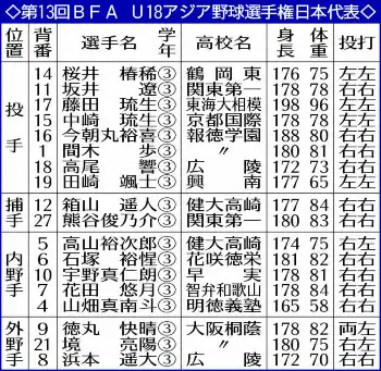 U18アジア選手権代表18選手に中崎&坂井ら選出 小倉監督「走攻守全ての面で積極的な野球を」