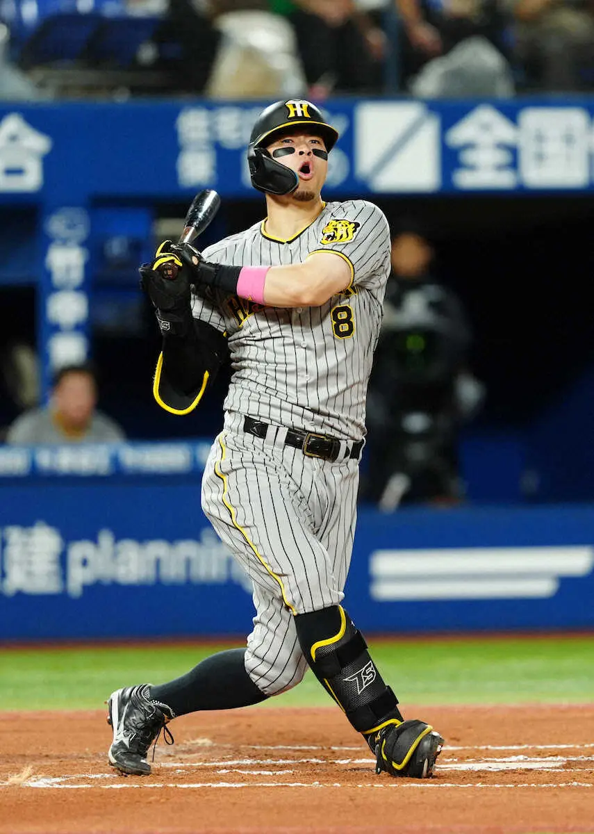 阪神は初回に森下の打球を蝦名が目測を見誤って二塁打となると、大山が右前に先制の適時打を放ったが、村上が3回に蝦名、オースティンに適時二塁打され、逆転を許した。打線を組み替えた阪神だが、6番に降格した佐藤輝は初回2死二、三塁で空振り三振に倒れるなど、ブレーキとなった。