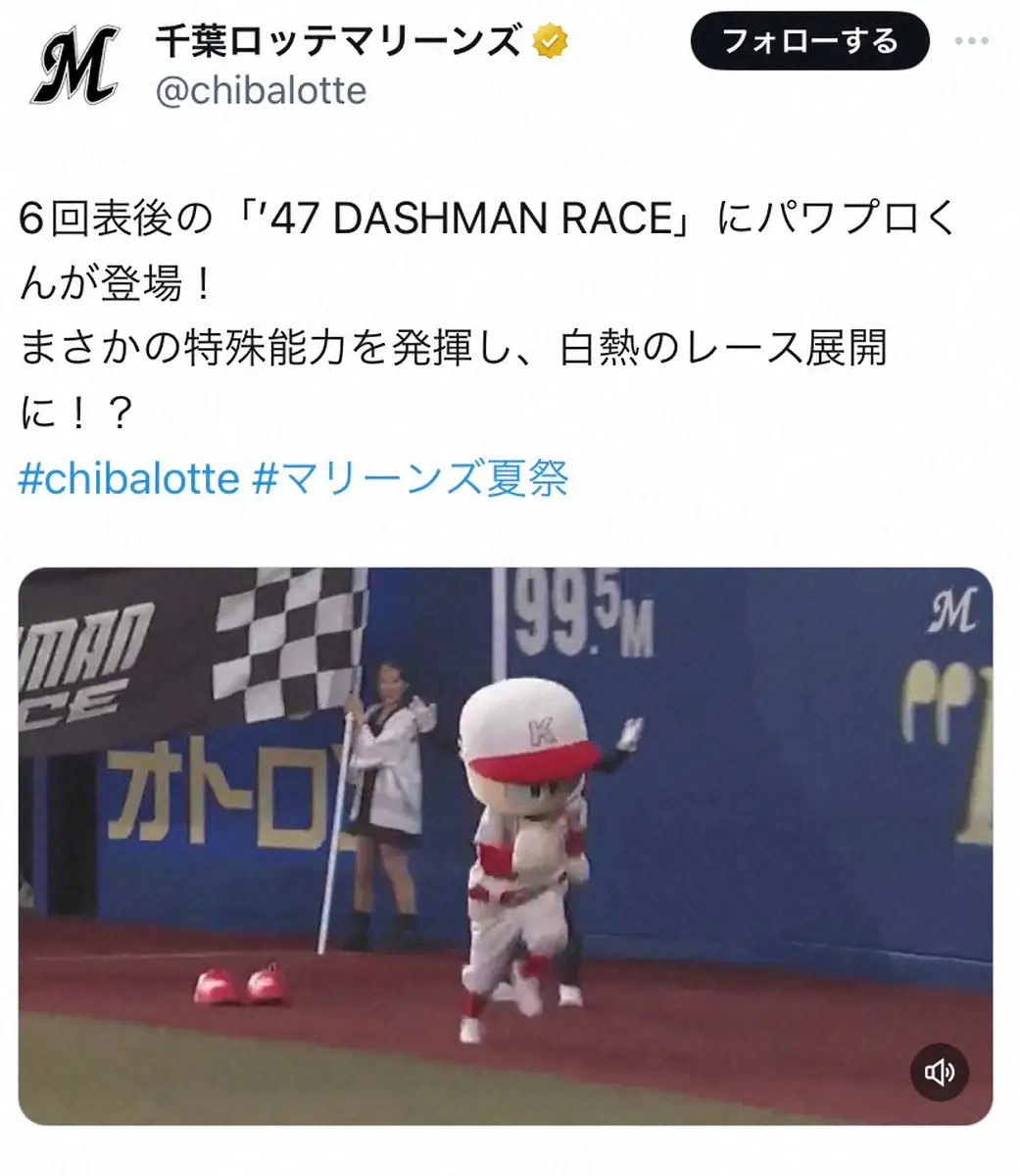 <ロ・ソ>ファーストピッチセレモニーで剛速球を披露したパワプロくん(撮影・長久保 豊) Photo by スポニチ パワプロくん スニーカーでガチ激走! ダッシュマンレース制し、球場大歓… ギャラリーで見る この記事のフォト 2024年09月01日の画像一覧 もっと見る 2024年09月01日の画像をもっと見る
