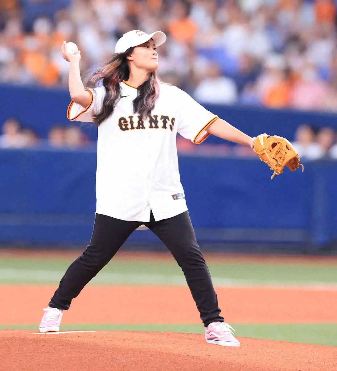 東京五輪スケートボード・女子パークの金メダリストでパリ五輪にも出場し、9月の「X Games Chiba 2024」に出場する四十住さくら(22)が4日、巨人―ヤクルト(京セラD)の試合前にファーストピッチを行った。