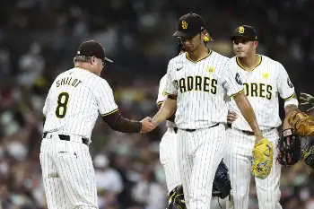 3回途中で降板したパドレス・ダルビッシュ(中央)はシルト監督(左)と握手(AP) Photo by AP パドレス・松井裕樹は1回1/3を2失点 ダルビッシュ後継ぎピンチ防ぐも2イ… ギャラリーで見る この記事のフォト 2024年09月05日の画像一覧 もっと見る 2024年09月05日の画像をもっと見る