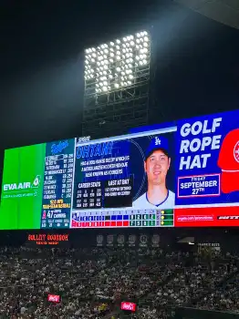 今カードが大谷のドジャース移籍後初のエンゼルスタジアムでの試合。前日の大谷の打席では大型スクリーンに「used to work here(以前ここで働いていた)」と表示されたが、この日は大谷が打席に立つと大型スクリーンで趣味を紹介。「自由時間はスポーツ映画を鑑賞」と紹介され、大谷お気に入りのアメフト映画の「ルディ」、「タイタンズを忘れない」の2作が紹介された。
