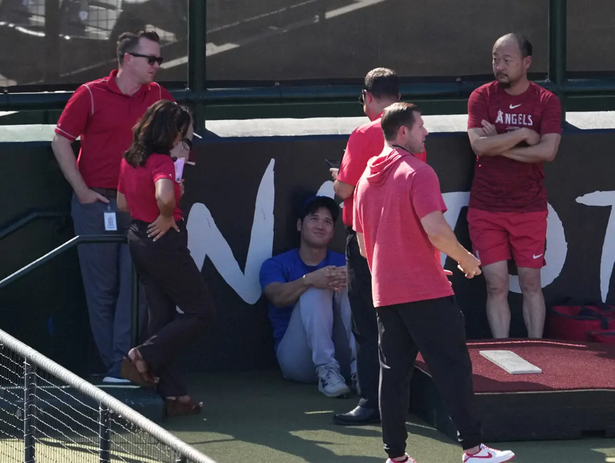 また、投球練習後はブルペンに訪れた寺田庸一トレーナー、日系2世のグレース・マクナミー広報らエンゼルススタッフと旧交を温め、可愛く三角座りして談笑する場面もあった。