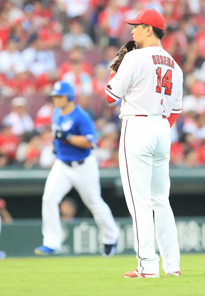 <広・中>初回、細川に先制2ランを浴びた大瀬良(撮影・岸 良祐)