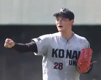 甲南大のプロ注目右腕・岡本駿が7回無失点 巨人・水野スカウト部長ら幹部級含む6球団が視察