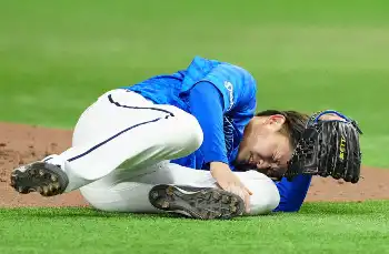 <巨・D19>2回、浅野の打球が当たった石田裕(撮影・島崎忠彦)