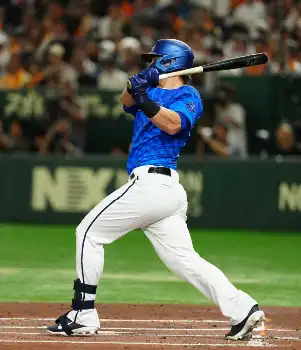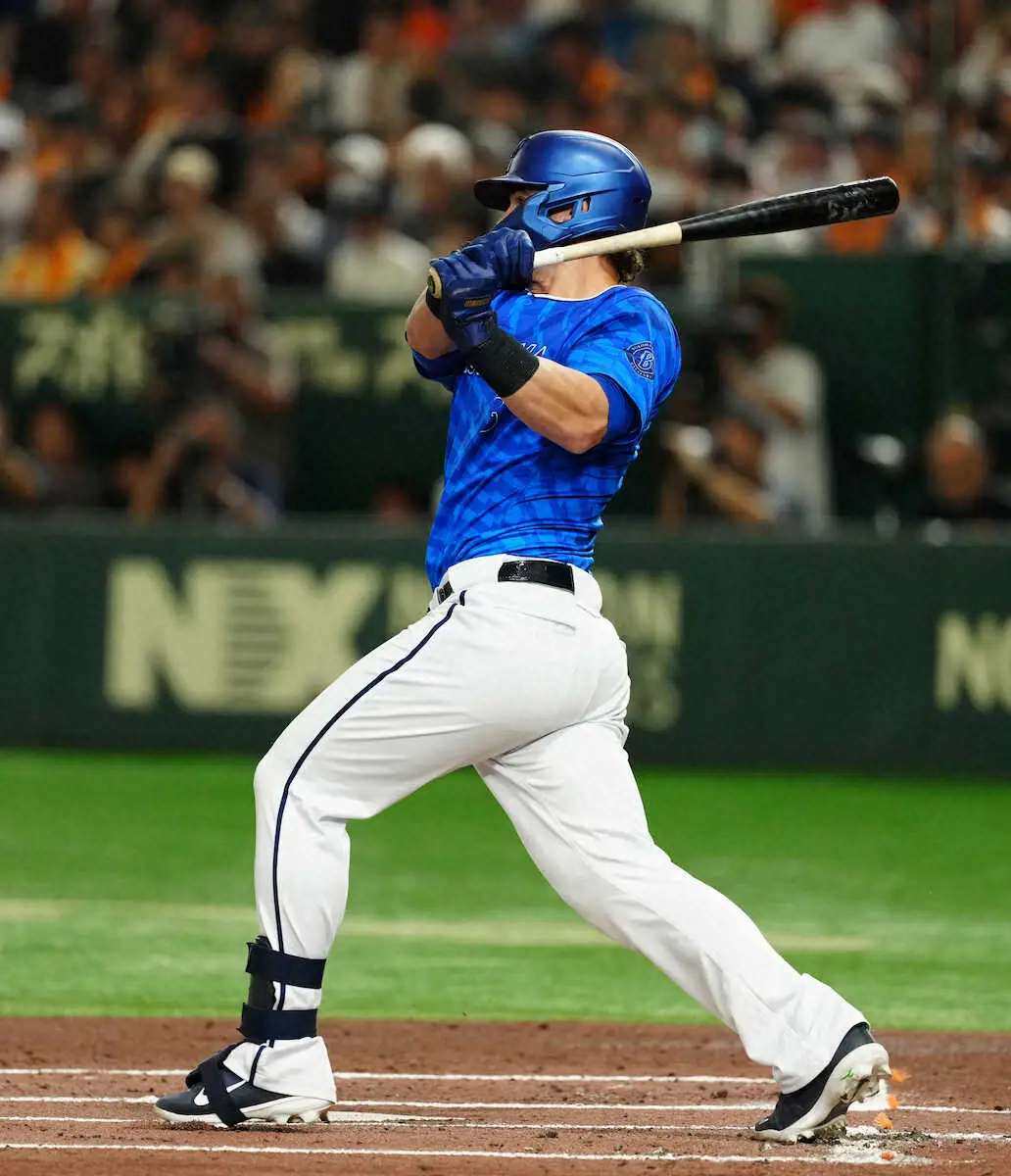 <巨・D19>初回、適時二塁打を放つオースティン(撮影・島崎忠彦)