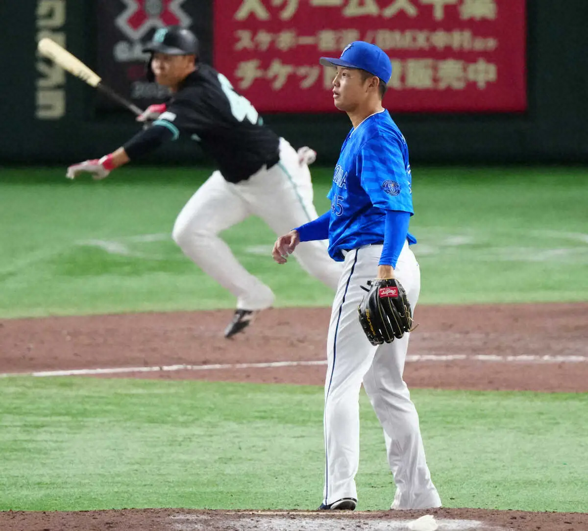 <巨・D19>9回、中山(左)に同点打を浴びた森原(撮影・木村 揚輔)
