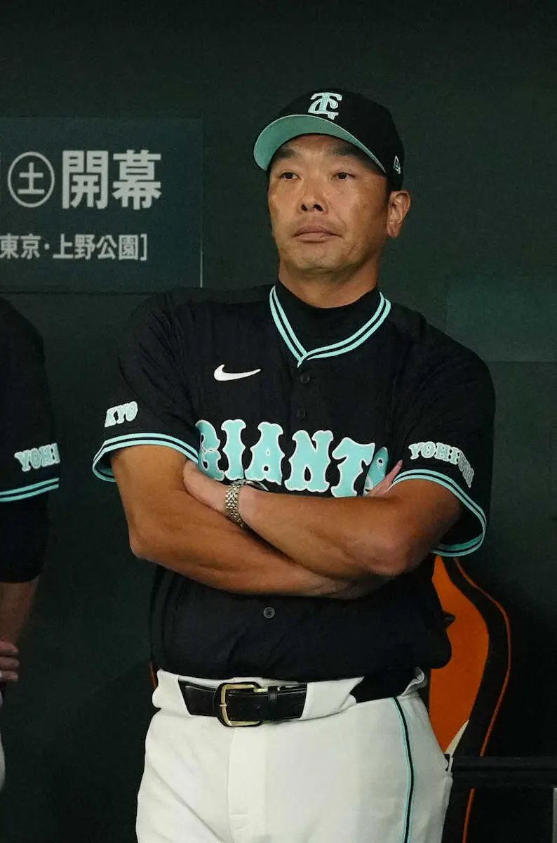 巨人・阿部監督 井上またしてもカバーリング遅れ…ぐっと腕組み 解説者「可愛いんでしょうね」