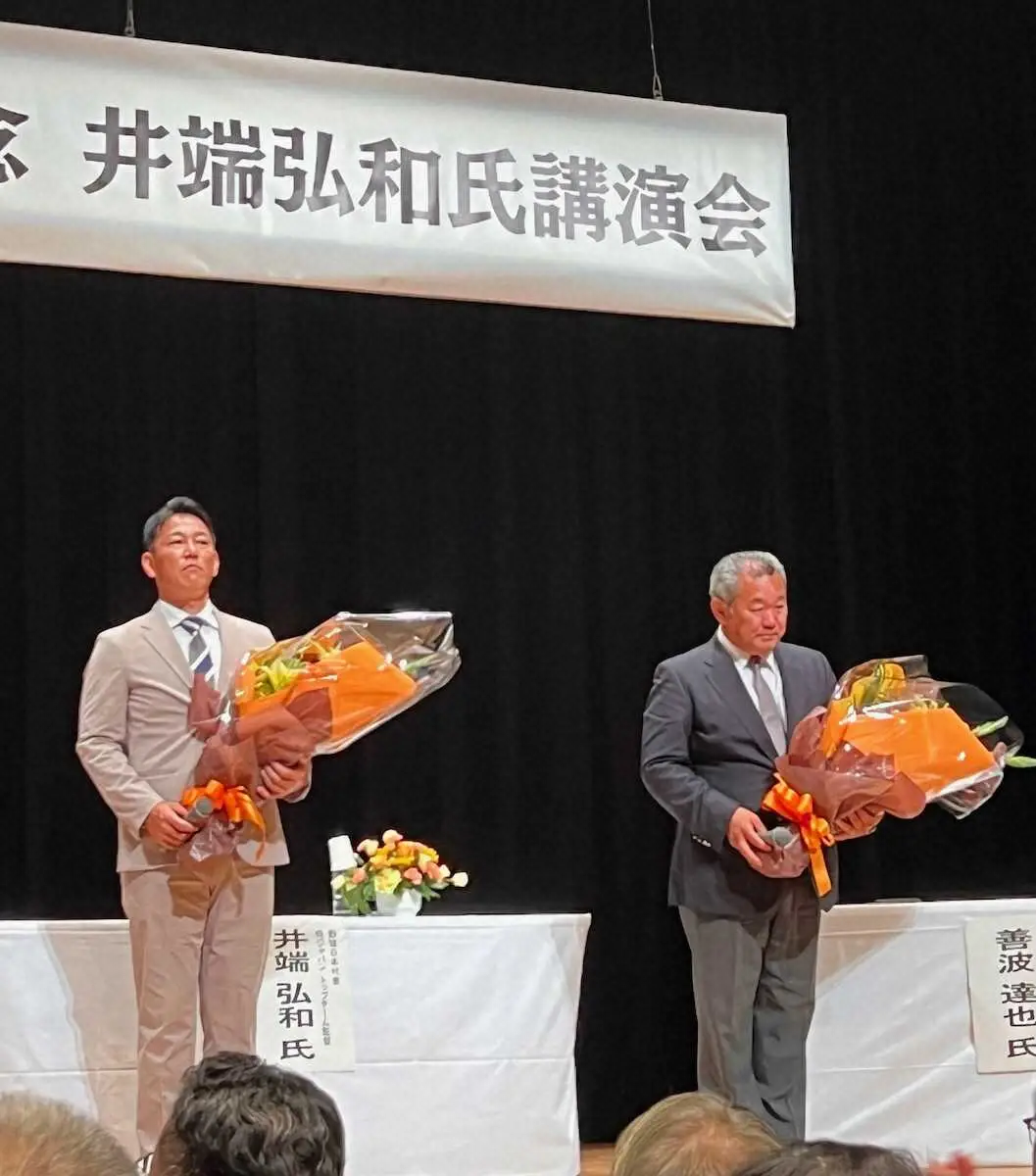 侍ジャパン・井端弘和監督(49)が8日、自宅のある横浜市青葉区の区制30周年を記念した講演会に招かれた。元明大監督で、大学日本代表監督も務めた善波達也氏(62)との対談も行った。