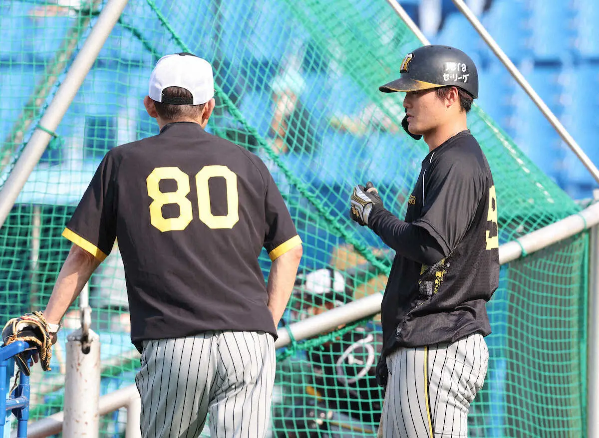 阪神の前川が8日の試合前の打撃練習中に、岡田監督から何かしらの打撃アドバイスをされる場面があった。フリー打撃の1セット目を終えると、ケージ脇で見ていた指揮官に呼ばれたようで、約3分ほど言葉に耳を傾けた。時折スイングの身振りをまじえ、言葉を伝えられた。2セット目を終えると、確認のためか、再び岡田監督の元に歩を進めた。