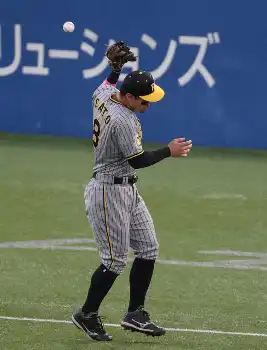 0―2の3回1死だった。西勇の投じたスライダーをひっかけた長岡の三塁への平凡なフライを三塁手・佐藤輝がまさかの落球。グラブをかすめた打球が頭に当たってフェアゾーンに落ちた。