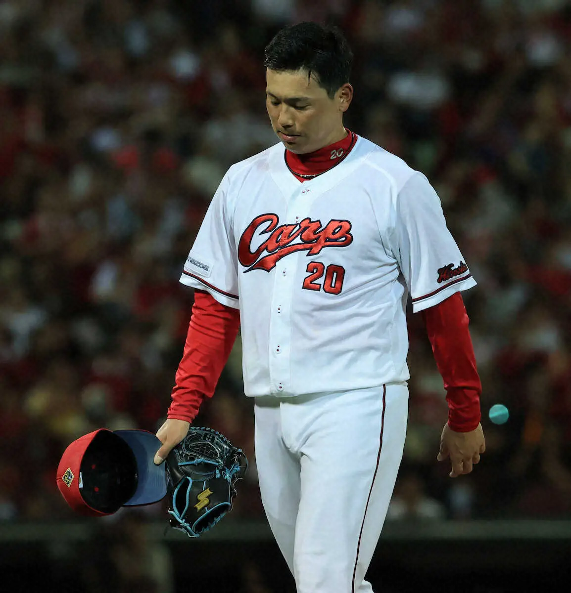 しかし、栗林は制球が定まらず無死満塁のピンチ。新井監督自らマウンドへ向かって激励したが、押し出し死球で1点差に迫られ、岡本和に適時打を浴びて同点に追いつかれた。さらに押し出し四球で勝ち越しを許し、ここまで37セーブを挙げてきた絶対的守護神がまさかの途中降板。後を託された投手陣も踏ん張り切れず、この回大量9点を失った。