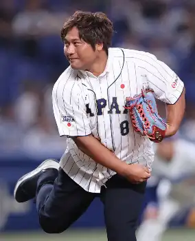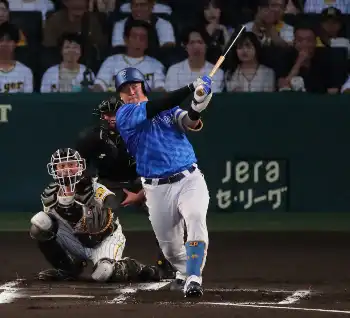 中日OBの平田良介氏が始球式 力強い速球にバンテリンDが沸いた!