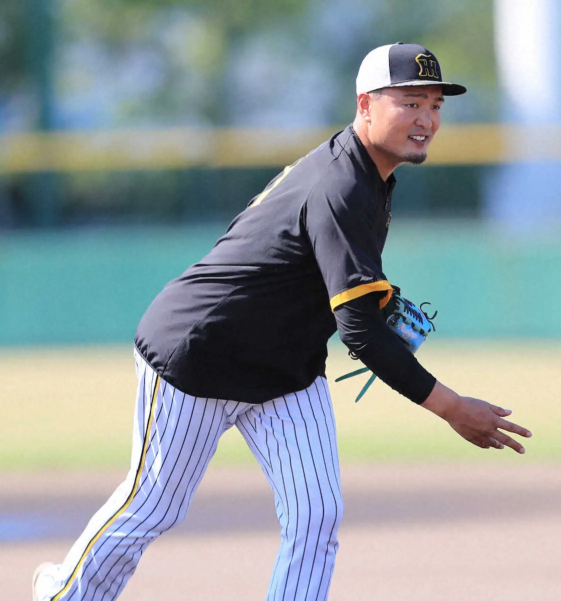 練習で汗を流す阪神・秋山(撮影・中辻 颯太)