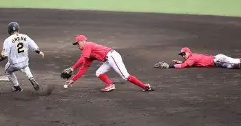 <神・広>7回1死満塁、木浪の打球を菊地が二塁にグラブトスするも、矢野が捕れず(撮影・大森 寛明) Photo by スポニチ 広島がサヨナラ負けで今季ワースト6連敗 救援陣崩れ、ピンチで失策…9月は… ギャラリーで見る この記事のフォト 2024年09月14日の画像一覧 もっと見る 2024年09月14日の画像をもっと見る