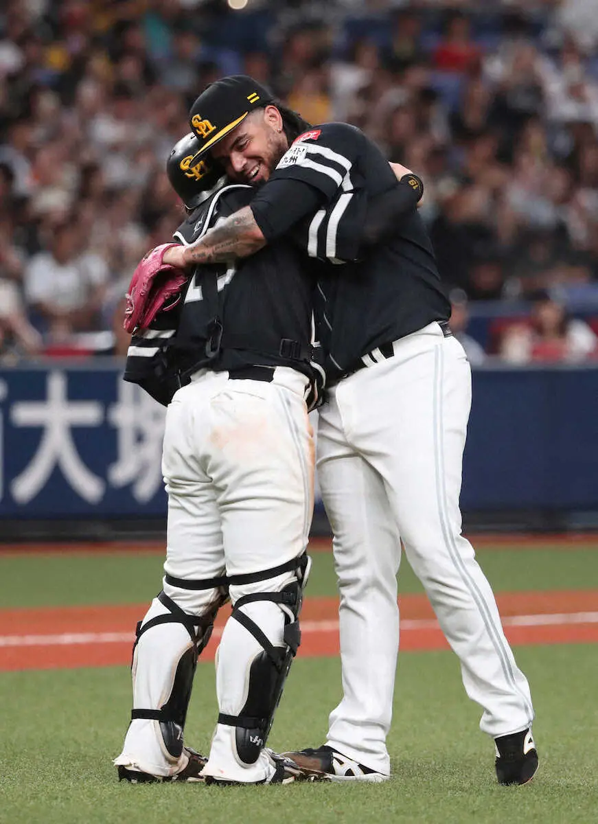 <オ・ソ>9回を抑え甲斐(左)と握手を交わすオスナ(撮影・後藤 正志) Photo by スポニチ ソフトバンク守護神オスナが約2カ月半ぶりの1軍復活マウンド 9回に登板し… ギャラリーで見る この記事のフォト 2024年09月14日の画像一覧 もっと見る 2024年09月14日の画像をもっと見る