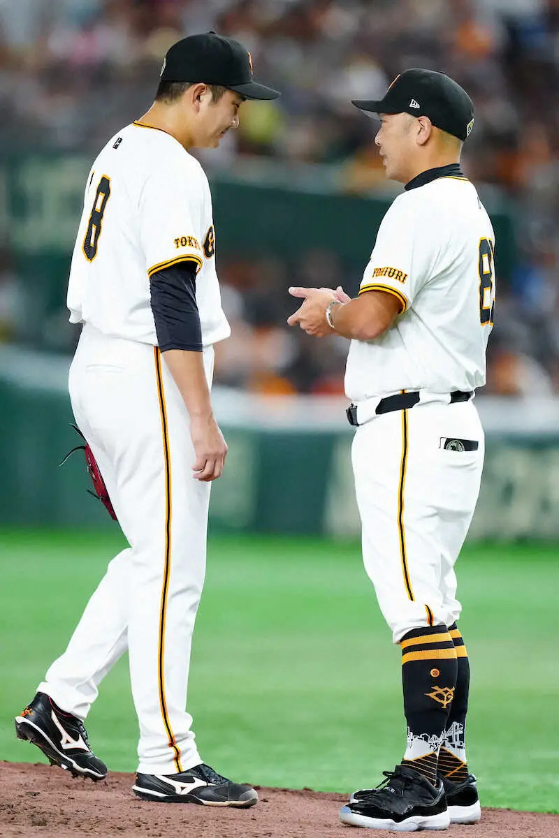 交代時に自らマウンドへ行って声をかけた菅野については、どんな言葉をかけたのか聞かれると「いや、大城をね、ファーストで使ったのは僕のせいなんで。申し訳ないって言って。それだけです、はい」と大城卓の拙守を謝罪したと明かした。