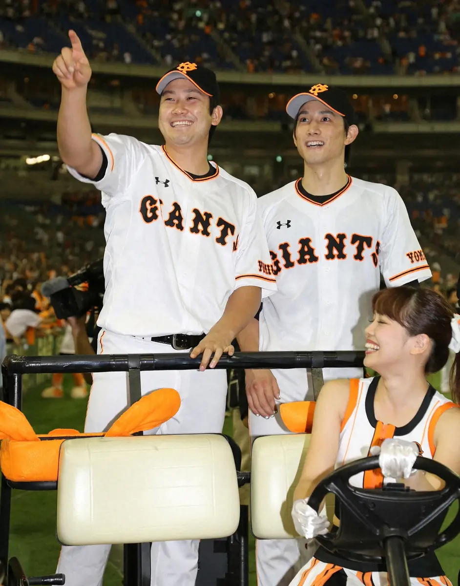何だあれ?2015年、ともにお立ち台に上がり場内をリラックスした表情で1周する菅野と小林