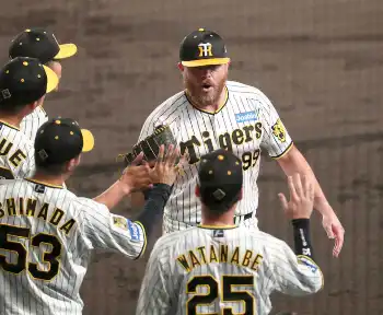 <神・ヤ>6回を投げ終えてベンチに戻るビーズリー(撮影・後藤 正志) Photo by スポニチ 阪神が逃げ切り3連勝 ビーズリーが6回1失点で8勝目 佐藤輝、右京が連続H… ギャラリーで見る この記事のフォト 2024年09月15日の画像一覧 もっと見る 2024年09月15日の画像をもっと見る