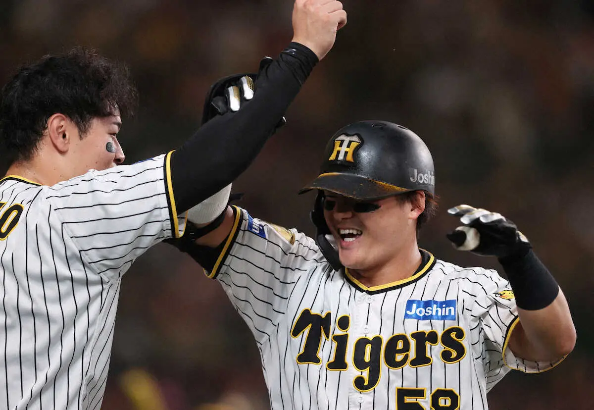甲子園の右翼から左翼方向へと吹く左打者の難敵「浜風」を切り裂く痛烈なライナーを立て続けに繰り出した。0―1の劣勢を一瞬で跳ね返す豪快な2発。首位・巨人を2ゲーム差で追う中、絶対に負けられない一戦で若きW主砲が快音を響かせた。