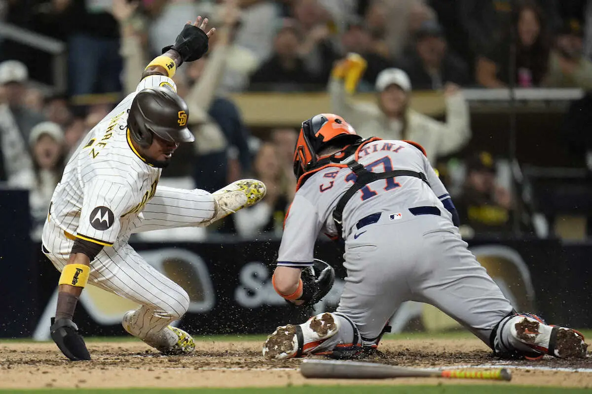 左ひざを強打し、本塁付近で座り込むパドレスのアラエス(AP) Photo by AP ナ・リーグ首位打者のパドレス・アラエス 負傷のため途中交代 本塁クロ… ギャラリーで見る この記事のフォト 2024年09月17日の画像一覧 もっと見る 2024年09月17日の画像をもっと見る