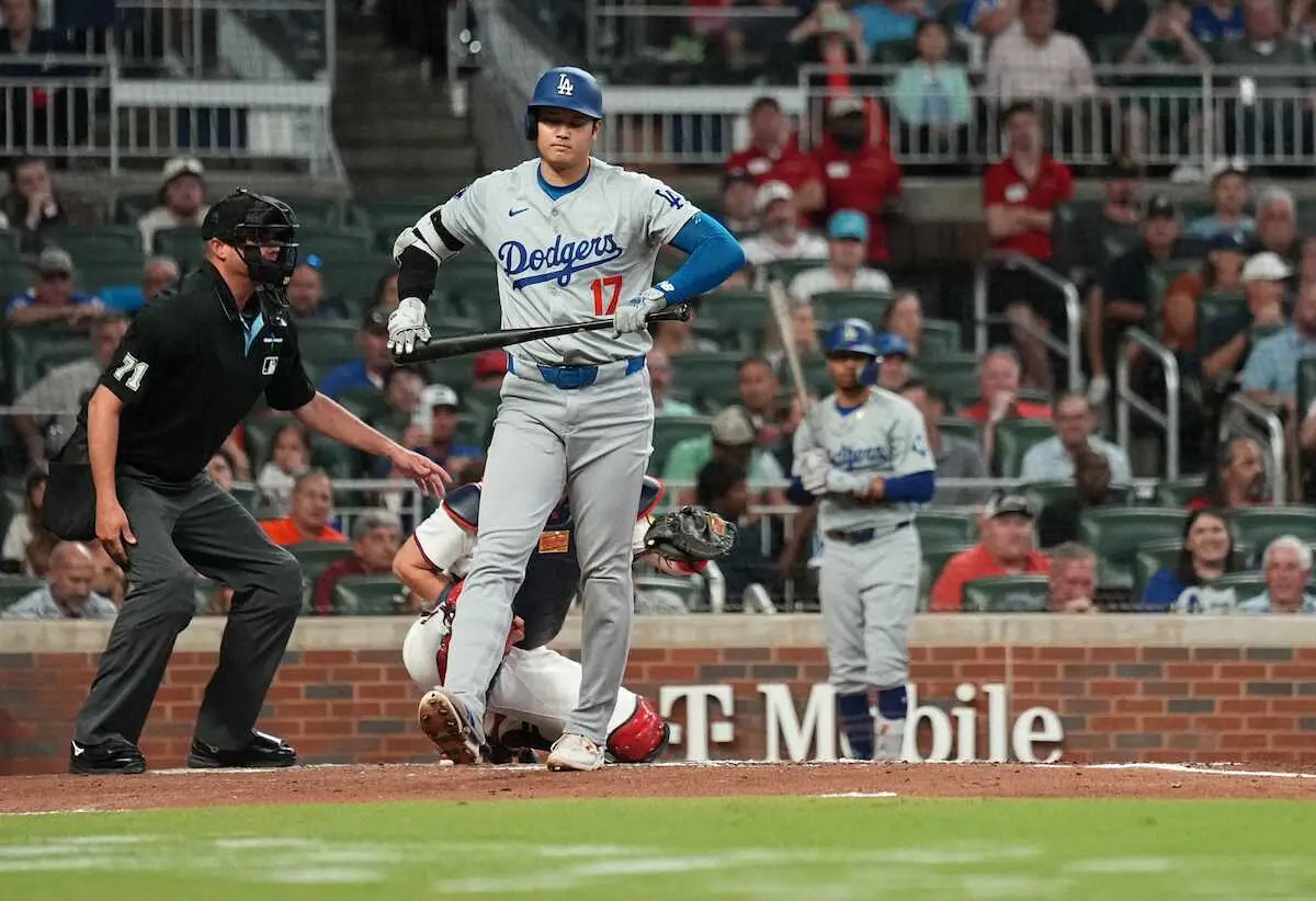 ドジャースの大谷翔平投手(30)が16日(日本時間17日)、敵地でのブレーブス戦に「1番・DH」で先発出場。第2打席は四球で歩いた。
