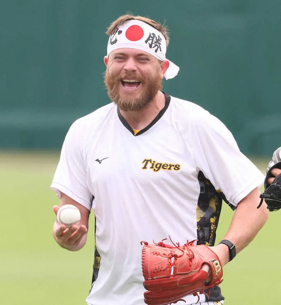 ≪ビーズリー必勝ハチマキで練習参加≫阪神・ビーズリーは甲子園で行われた投手指名練習に「必勝」ハチマキを締めて参加した。ファンにもらったものだそうで「周りの(投手陣の)反応も良かった。“必勝”というものをみんなに見せるのも、みんなにとってもいいのかなという気持ちがあった」と笑顔を見せた。きょう20日のDeNA戦からはリリーフ待機する予定。昨季は救援として12試合に登板した右腕は、キャッチボールなどで調整し「残りの9試合をどうやってチームで全部勝っていくかが大切」と意気込んだ。