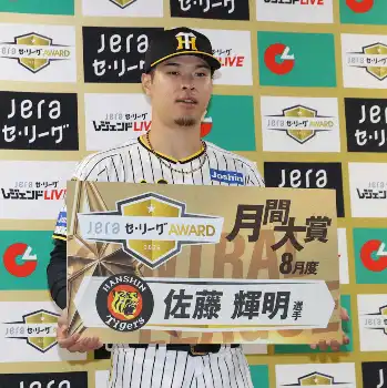 阪神・佐藤輝が月間JERA セ・リーグAWARD8月度表彰式に出席 残り少ない9月も「頑張りたい」