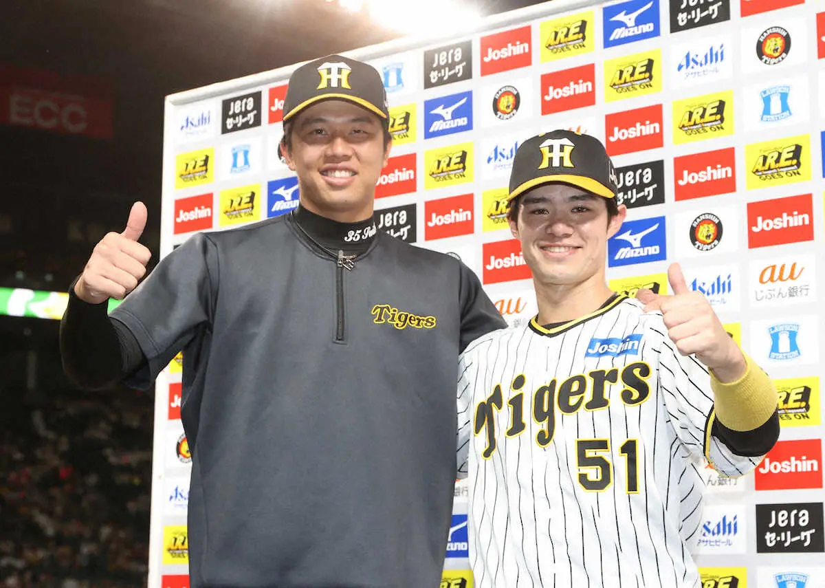 <神・巨>梅野(右)と喜びを分かち合う才木(撮影・大森 寛明) Photo by スポニチ 阪神 才木おふざけヒーローインタビューで聖地沸かす「ウオーイと思いな… ギャラリーで見る この記事のフォト 2024年09月22日の画像一覧 もっと見る 2024年09月22日の画像をもっと見る