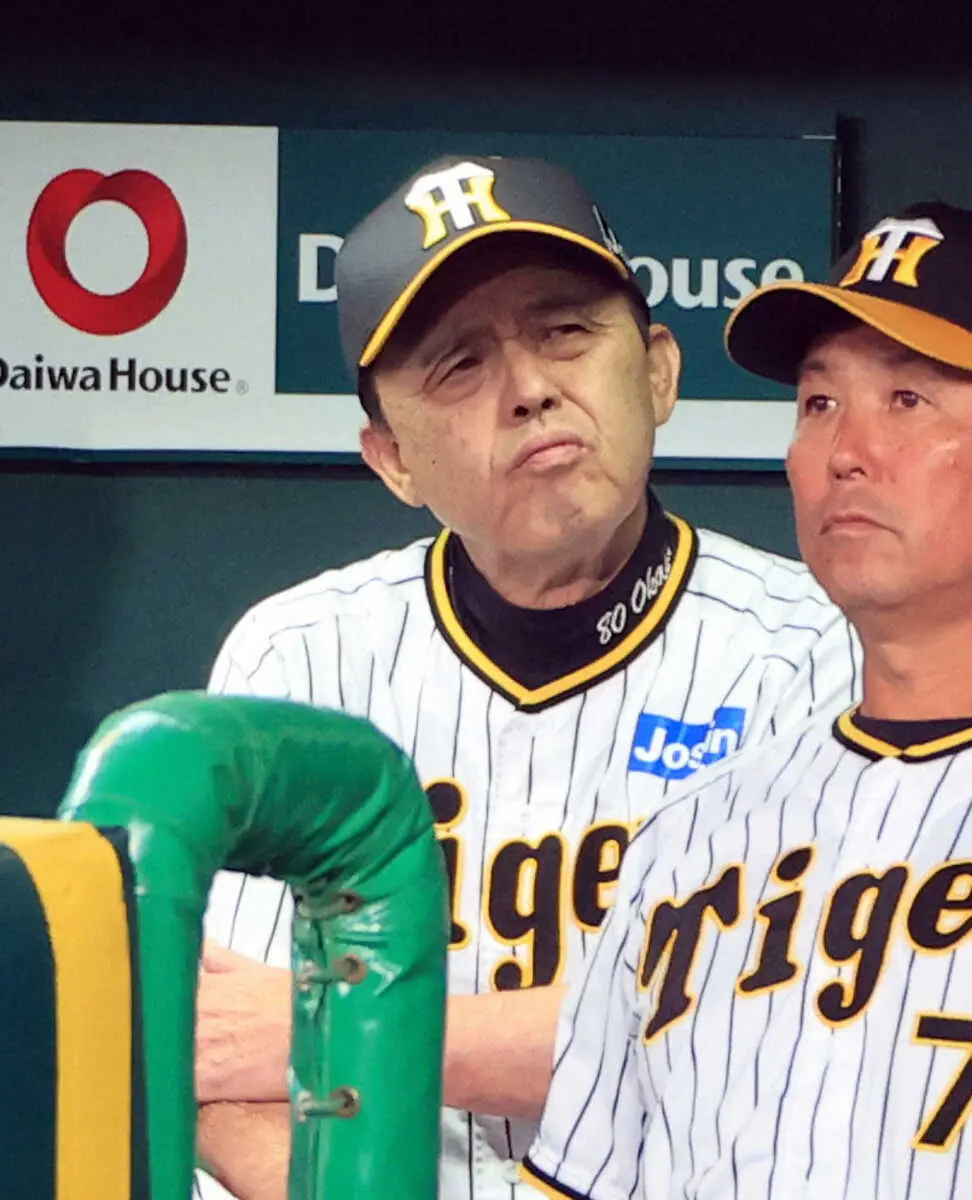 <神・巨>5回、ベンチの岡田監督(撮影・西川 祐介)