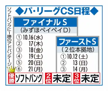 【パCS日程】ソフトバンクV CSはファーストSが10月12日から ファイナルSは10月16日から