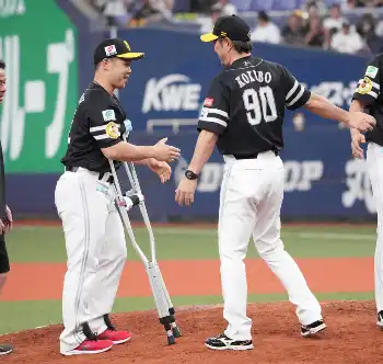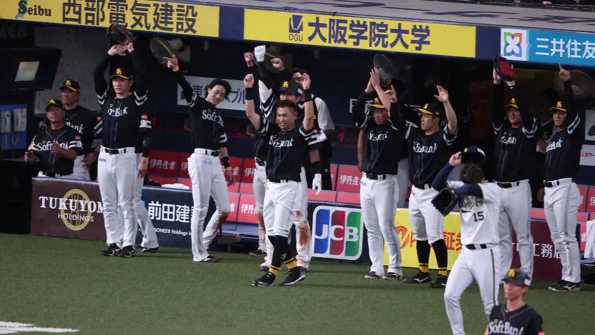 <オ・ソ23>勝ち越しの生還する牧原大、川村を笑顔で迎える小久保監督(右2人目)(撮影・後藤 正志) Photo by スポニチ ソフトバンク4年ぶりV 4月から首位独走、圧巻167日間“一人旅” 窮地も一… ギャラリーで見る この記事のフォト 2024年09月23日の画像一覧 もっと見る 2024年09月23日の画像をもっと見る