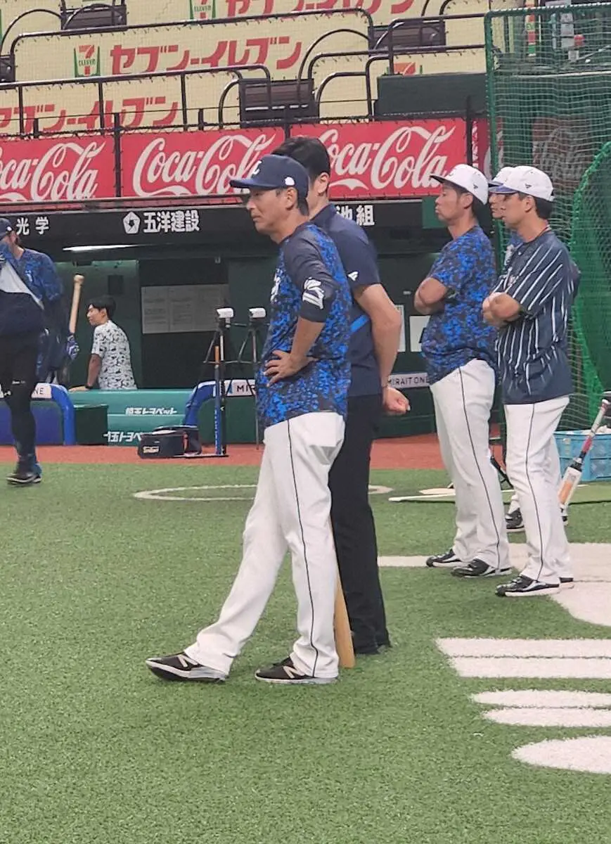 練習を見守る西武・西口2軍監督