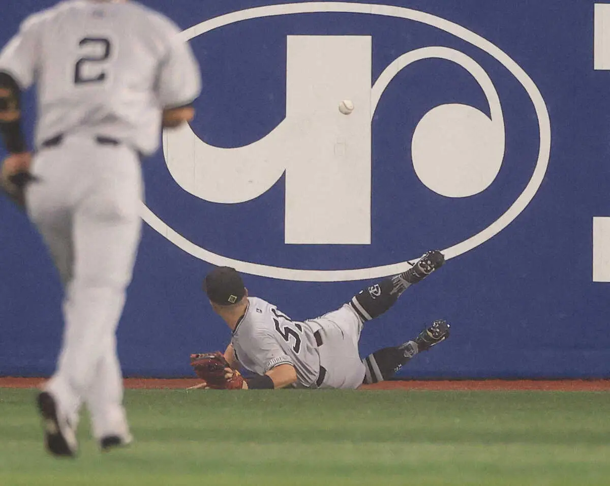 <D・巨>2回、オースティンの飛球の落下点に入った浅野だったが脚を滑らせ捕れず。 記録は三塁打 (撮影・西川祐介) Photo by スポニチ M4巨人 雨中のハマスタで波乱の幕開け 浅野が右翼守備で転倒、オーステ… ギャラリーで見る この記事のフォト 2024年09月25日の画像一覧 もっと見る 2024年09月25日の画像をもっと見る