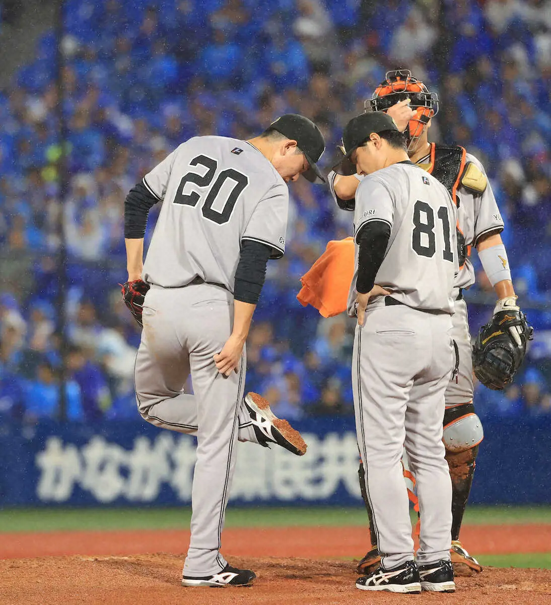 試合前から降り続いた雨でぬかるんだマウンドはぐちゃぐちゃ状態で、2回裏途中、3回裏途中、4回裏に入る前と3度も土が入れられる悪コンディション。戸郷はしきりに足もとを気にするしぐさを見せ、何度もスパイクの裏にべっとりと付着した泥を叩き落とす場面が見られた。