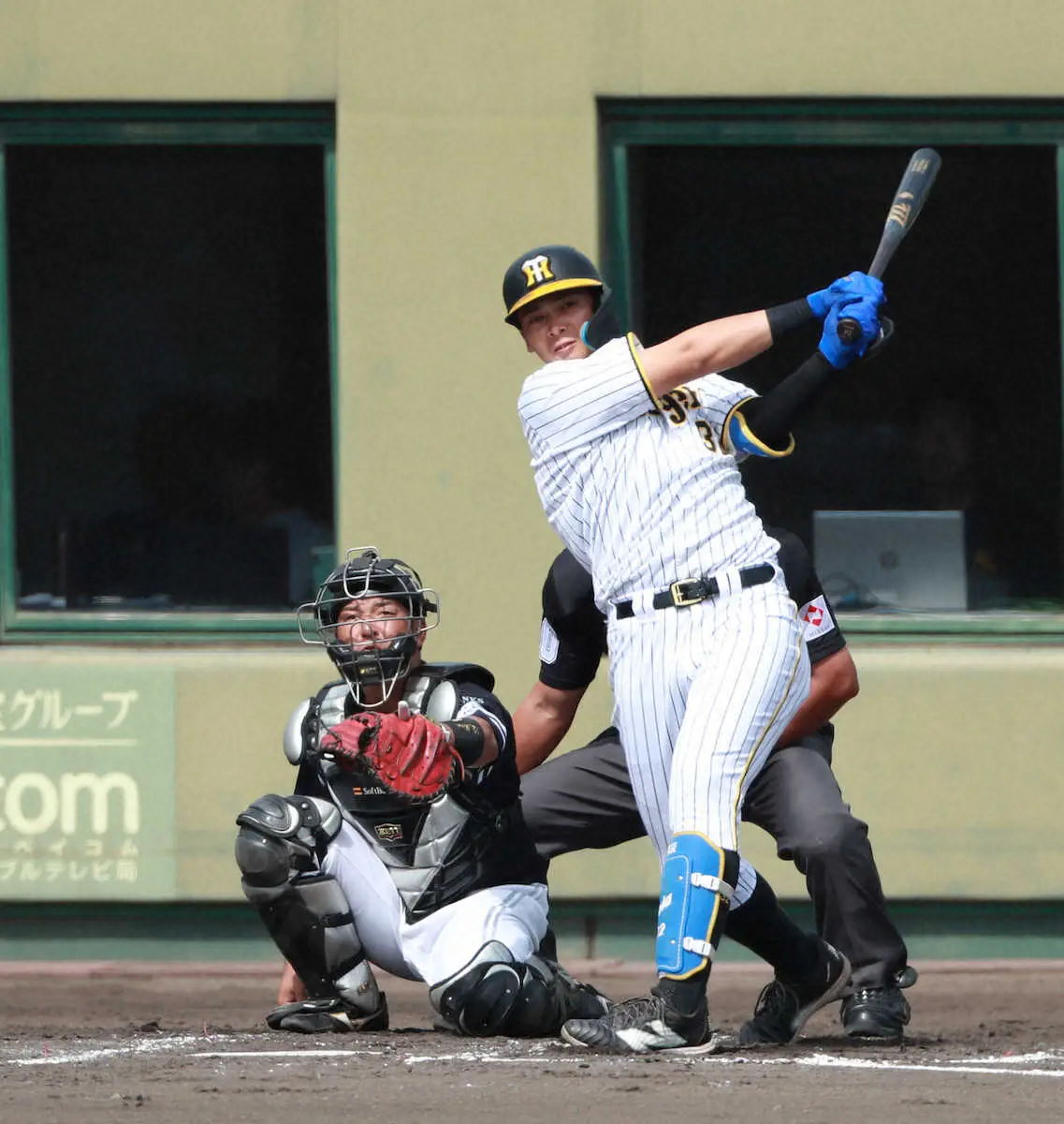 幾多の選手が汗と涙を流した鳴尾浜球場での最後の公式戦。井上が惜別の快音を響かせた。4点劣勢の5回1死で迎えた3打席目。ソフトバンク・渡辺佑の初球の真ん中直球をフルスイングで打ち返した。