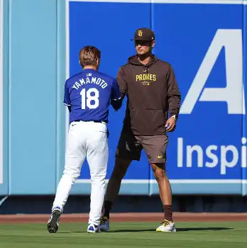 山本由伸がダルと約2分談笑 ブルペンでは21球 一時体調崩すも29日「先発を予定」とドジャース監督