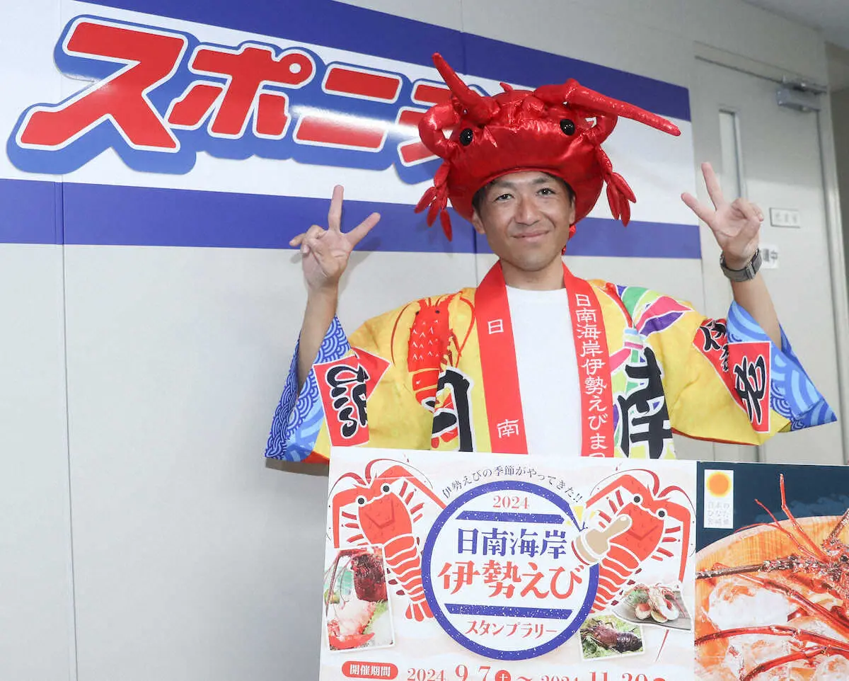 プロ野球のオリックスなどの春季キャンプ地である宮崎市の観光協会関係者が27日、大阪市北区のスポーツニッポン新聞社大阪本社を訪れ、宮崎県の特産品の一つである「伊勢エビ」をPRした。