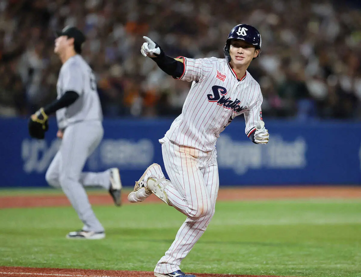 ヤクルト・長岡が価値ある劇打で5連勝に導いた。1点を追う9回に同点に追いつきなお1死一、三塁。平内の直球を捉え右前にサヨナラ打を放ち「思い出になる」とちゃめっ気たっぷりに喜んだ。