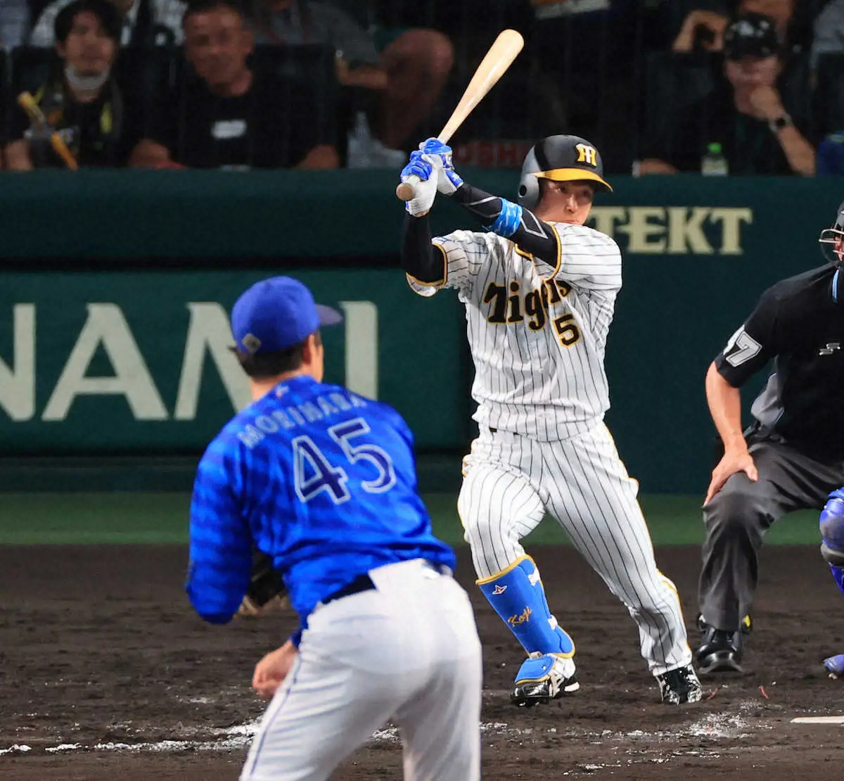 プロ2年目の相手先発投手・吉野に序盤から大苦戦。初回を3者凡退でスタートすると0―0の3回は3番・森下が死球で出塁。続く大山の三ゴロが失策を誘って一、三塁をつくったが5番・佐藤輝が空振り三振、前川が左飛に倒れた。以降も凡打の山を築き無安打。9回に先頭の近本が初安打となる左前打を放ち「継投ノーノー」の屈辱を免れた。