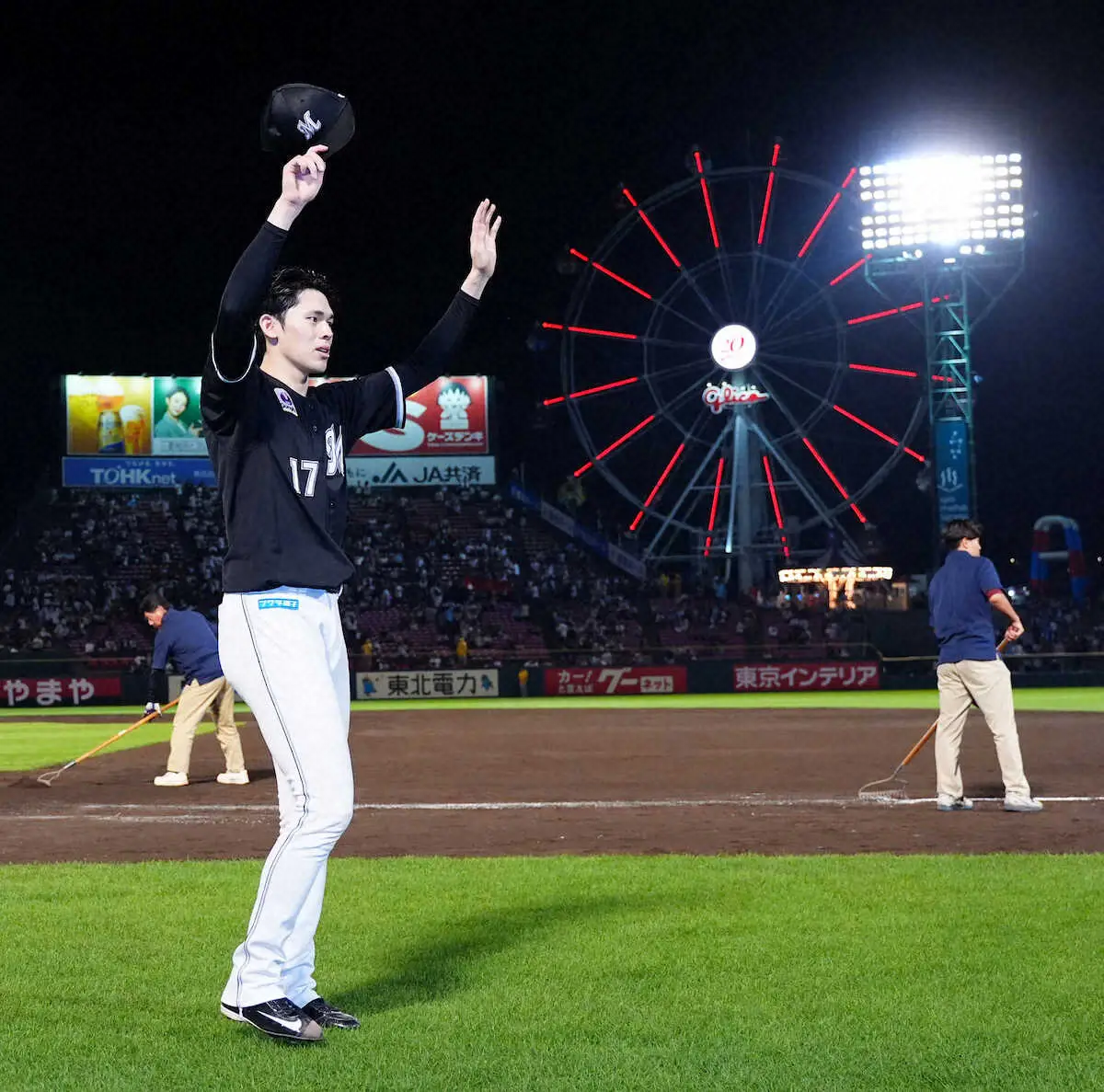 ドジャースの編成本部長や球団副社長、ヤンキースやレイズのスカウトなどメジャー10球団が視察に訪れる中、初回にフォークの制球に苦しみ1点を失うも、その後は最速157キロの直球と、切れのあるスライダーとフォークで楽天打線を翻ろう。9回のマウンドにも上がり、108球5安打10奪三振1失点の力投で、プロ5年目で初、自身最多の2桁10勝目を挙げ、チームを2年連続CSに導いた。佐々木の完投はプロ5年で3度目だが、完投勝利は完全試合を達成した2022年4月10日のオリックス戦(ZOZOマリン)以来2年半ぶり2度目となった。