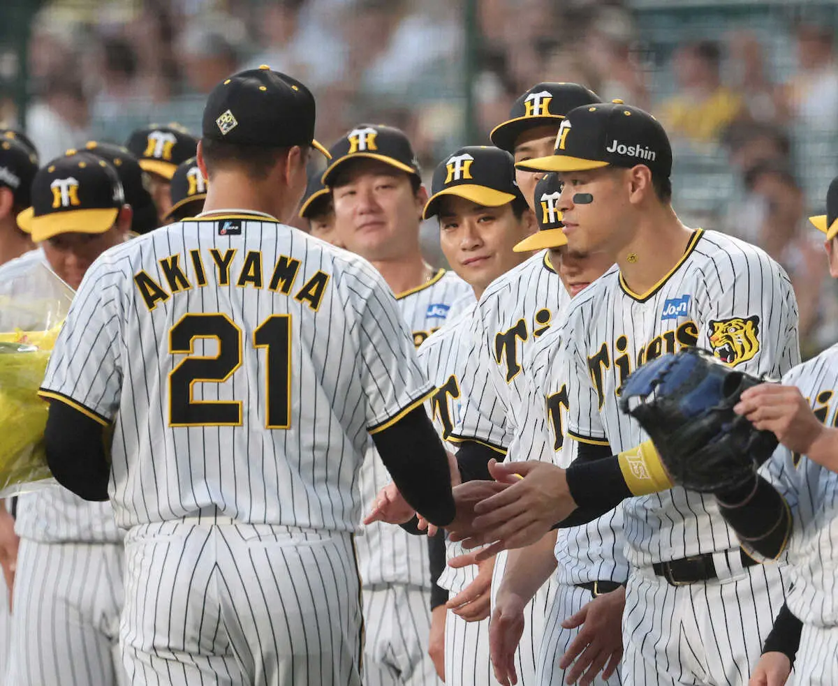 再会の裏には、一つの別れもあった。試合前、今季限りで現役を退く秋山の引退セレモニーが盛大に催された。タテジマ一筋15年、故障から何度もはい上がった不屈の男。虎党にも深く愛された先輩には敬意が口をつく。